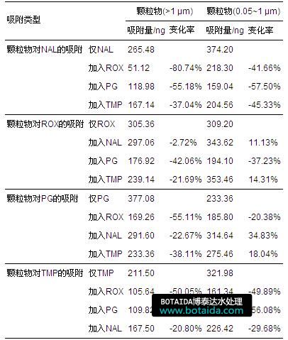 表1 不同粒徑顆粒物對(duì)抗生素的吸附