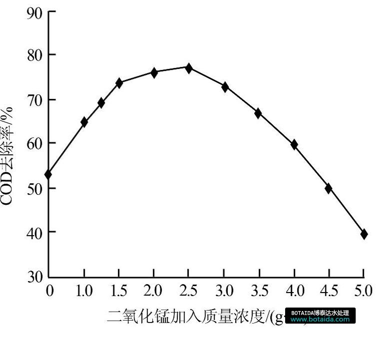 圖2 MnO2加入量對(duì)廢水COD去除率的影響