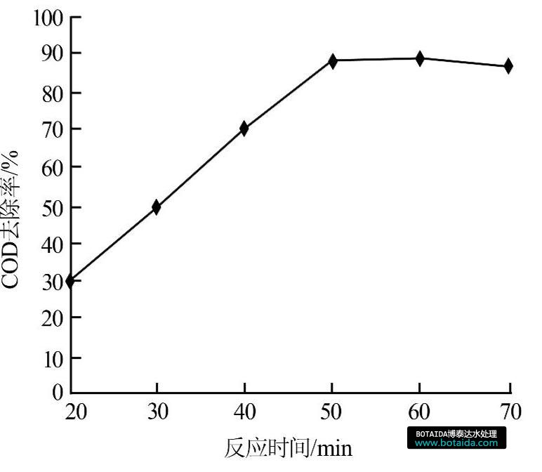 圖5 反應(yīng)時(shí)間對(duì)廢水COD去除率的影響