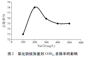 2. 3 氯化鈉投加量對(duì)CODCr去除率的影響