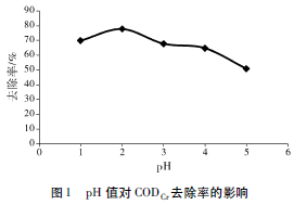 2. 2 pH值對(duì)CODCr去除率的影響