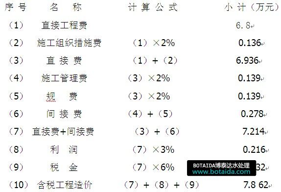 工程調(diào)試費(fèi)=(土建工程費(fèi)+設(shè)備設(shè)施及器材購置及安裝費(fèi))×2%=(7.862萬+9.25萬)×2%=0.342萬。