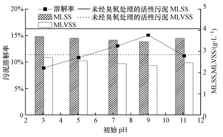 在污泥臭氧處理過(guò)程中,臭氧投加量和活性污泥的初始pH會(huì)影響污泥的溶解率及有機(jī)質(zhì)、氮、磷等物質(zhì)的溶出,從而影響污泥臭氧減量的效果.故合理的臭氧投加量和污泥初始pH不僅對(duì)污泥臭氧減量有利,而且可以提高工藝的經(jīng)濟(jì)性.