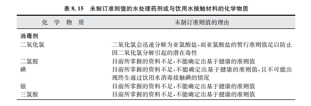 表8.15列舉了尚未制訂準則值的化學物質(zhì),并在表中說明了理由,其資料概覽見第12章。