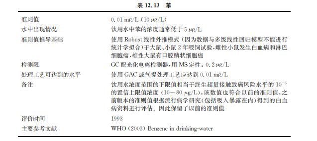 苯主要用于其他有機(jī)化合物的生產(chǎn)。苯存在于石油中。汽車(chē)尾氣是環(huán)境苯的主要來(lái) 源。苯有可能通過(guò)工業(yè)排放和大氣污染進(jìn)入水體(見(jiàn)表12.13)