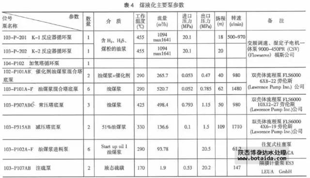 表4列出了煤液化主要泵參數(shù),這些泵當(dāng)時(shí)都是從國(guó)外進(jìn)口的,現(xiàn)在有些已能?chē)?guó)產(chǎn),但還是有不少位號(hào)的泵需要通過(guò)技術(shù)攻關(guān)才能實(shí)現(xiàn)國(guó)產(chǎn)化。