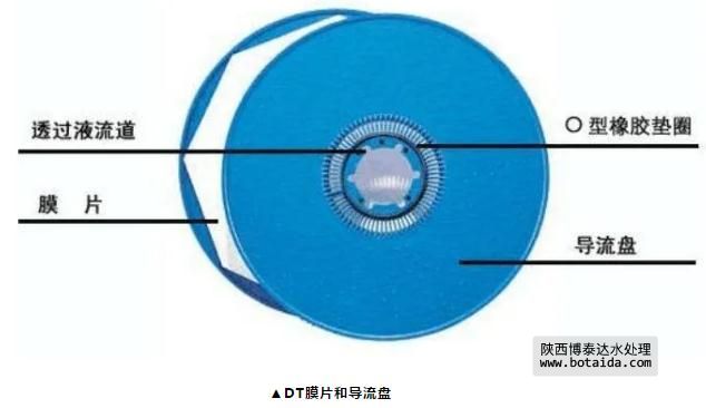 在該工藝中不需要實現(xiàn)污染物質(zhì)的最終去除,僅為分離作用,因此,運行能耗大大降低;DT組件內(nèi)部任何單個部件均允許單獨更換。過濾部分由多個過濾膜片及導流盤裝配而成,當過濾膜片需更換時可進行單個更換,對于過濾性能好的膜片仍可繼續(xù)使用,這最大程序減少了換膜成本。