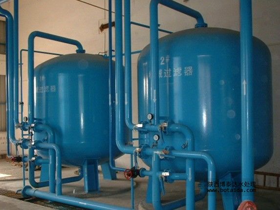 過(guò)濾器在剛投入使用時(shí),過(guò)濾效果往往不是很好,是因?yàn)樵趧傞_(kāi)始時(shí) 過(guò)濾器沒(méi)有形成“架橋”,所謂“架橋”是指由水中懸浮物組成一道攔截網(wǎng),該攔截網(wǎng)攔截與其粒徑相當(dāng)?shù)膽腋∥?,繼而攔截粒徑較小的懸浮物,形成一個(gè)先攔截大顆粒物質(zhì)、后攔截小顆粒物質(zhì)的反粒度式過(guò)濾過(guò)程。過(guò)濾器一旦形成“架橋”,過(guò)濾效果非常好,隨著投入運(yùn)行的時(shí)間加長(zhǎng),過(guò)濾精度越來(lái)越高,攔截網(wǎng)越來(lái)越厚,進(jìn)出口壓差越來(lái)越大,當(dāng)壓差達(dá)到1kg/cm2 應(yīng)對(duì)過(guò)濾器進(jìn)行反沖洗,在反沖洗的過(guò)程中最好配有壓縮空氣對(duì)石英砂擦洗,一般的工程經(jīng)驗(yàn)是直徑小于2500mm 的機(jī)械過(guò)濾器不需用壓縮空氣;而直徑大于 2500mm 的機(jī)械過(guò)濾器必需用壓縮空氣進(jìn)行擦洗才能夠達(dá)到滿(mǎn)意的清洗效果;反沖洗流量一般為過(guò)濾器的設(shè)計(jì)容量的 3-4 倍。