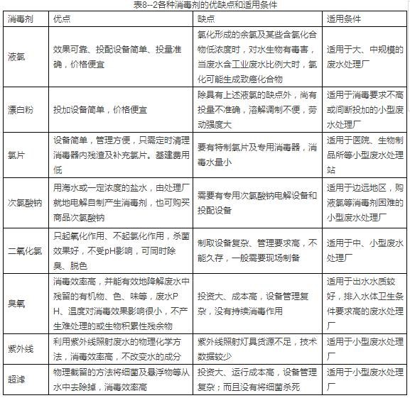各種消毒劑的優(yōu)缺點(diǎn)和適用條件見表8--2。參考此表,可以初步確定應(yīng)該使用的消毒劑。