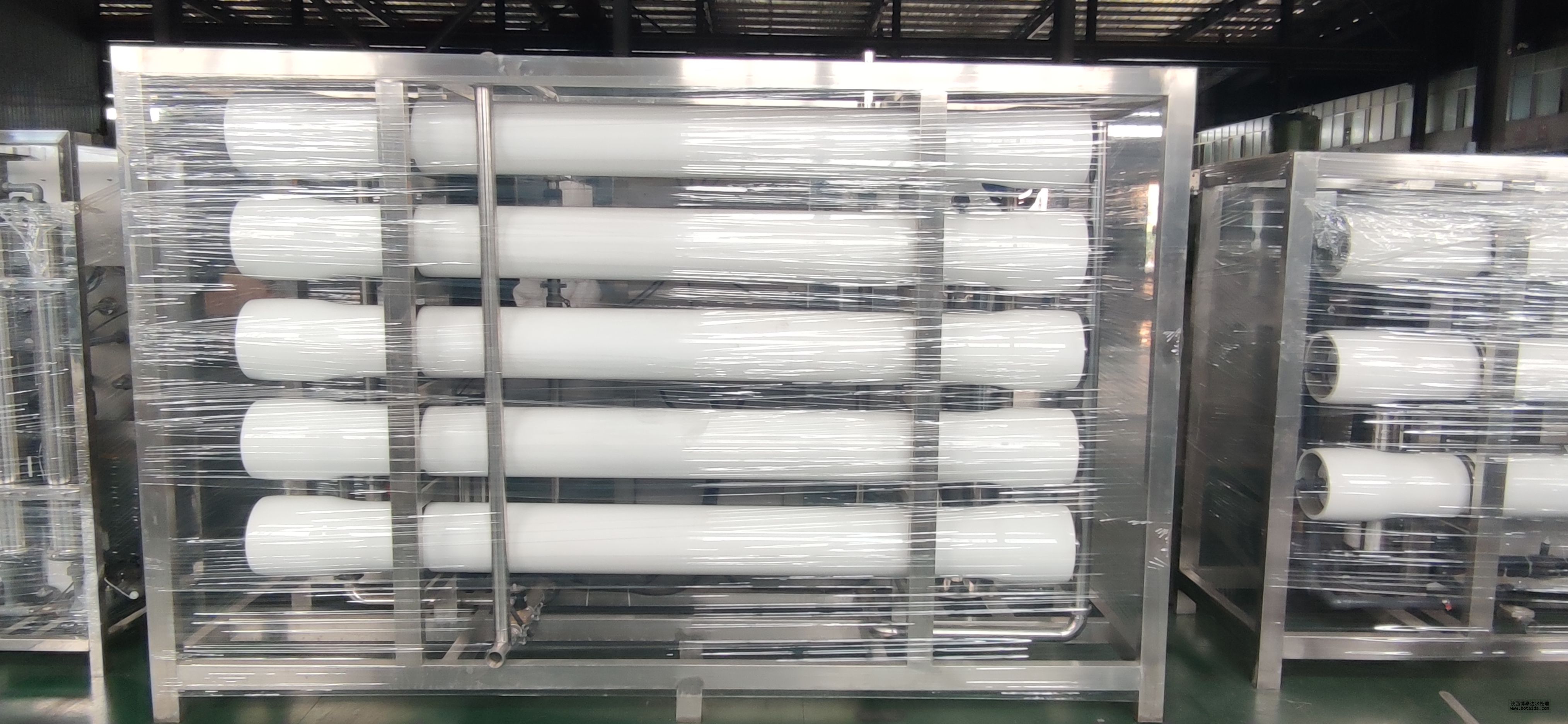 反滲透原理:就是在有鹽分的水中(如原水),施以比自然滲透壓力更大的壓力,使?jié)B透向相反方向進(jìn)行,把原水中的水分子壓力到膜的另一邊,變成潔凈的水,從而達(dá)到除去水中雜質(zhì)、鹽分的目的。實質(zhì)是脫水技術(shù)。