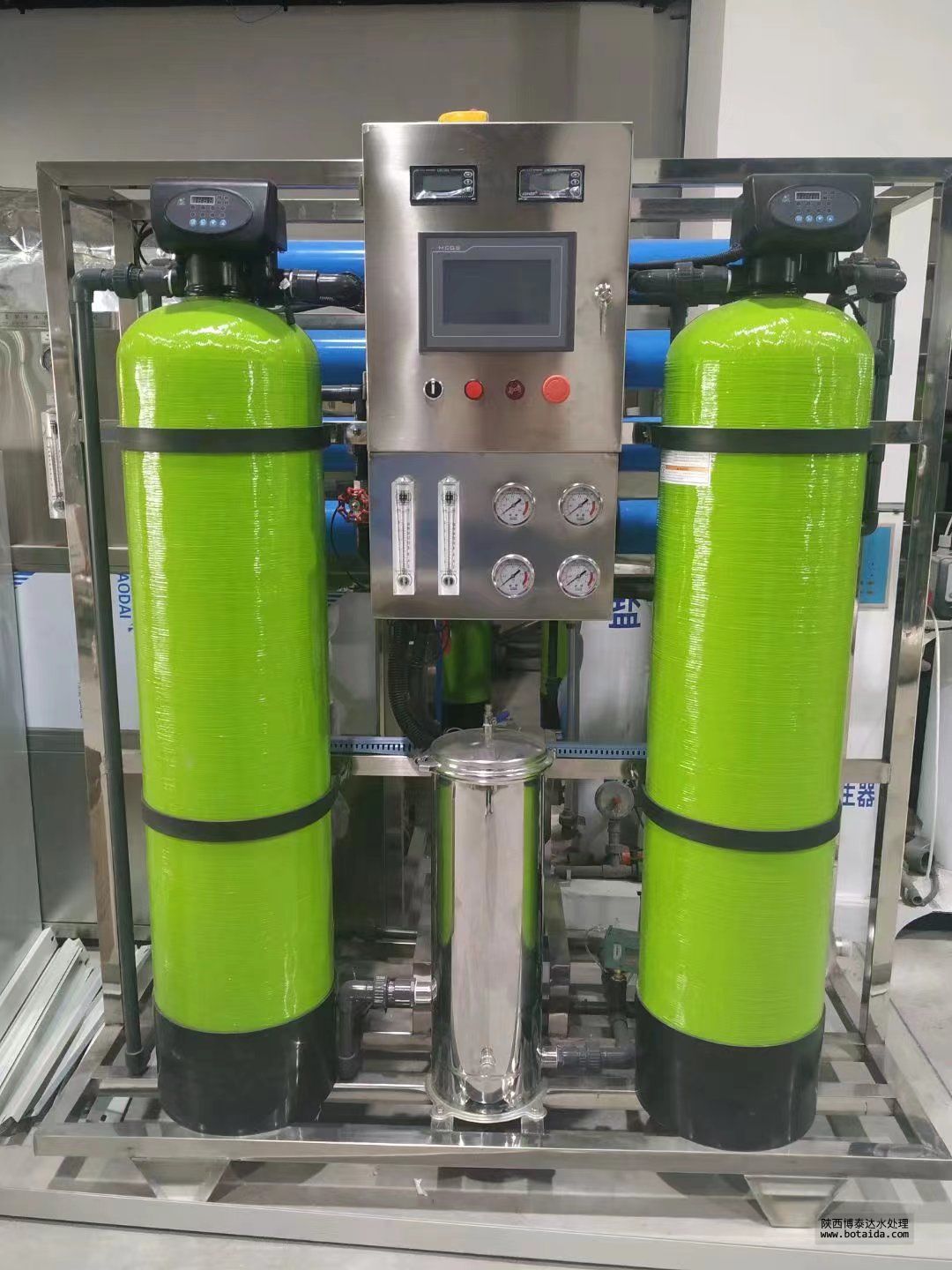 4、第四級過濾步驟是整個過程中最重要的,通過純凈水設(shè)備反滲透RO膜濾芯,過濾掉水中的無機離子、細菌和病毒,確保水質(zhì)的最優(yōu),但是這個過程中會產(chǎn)生廢水。